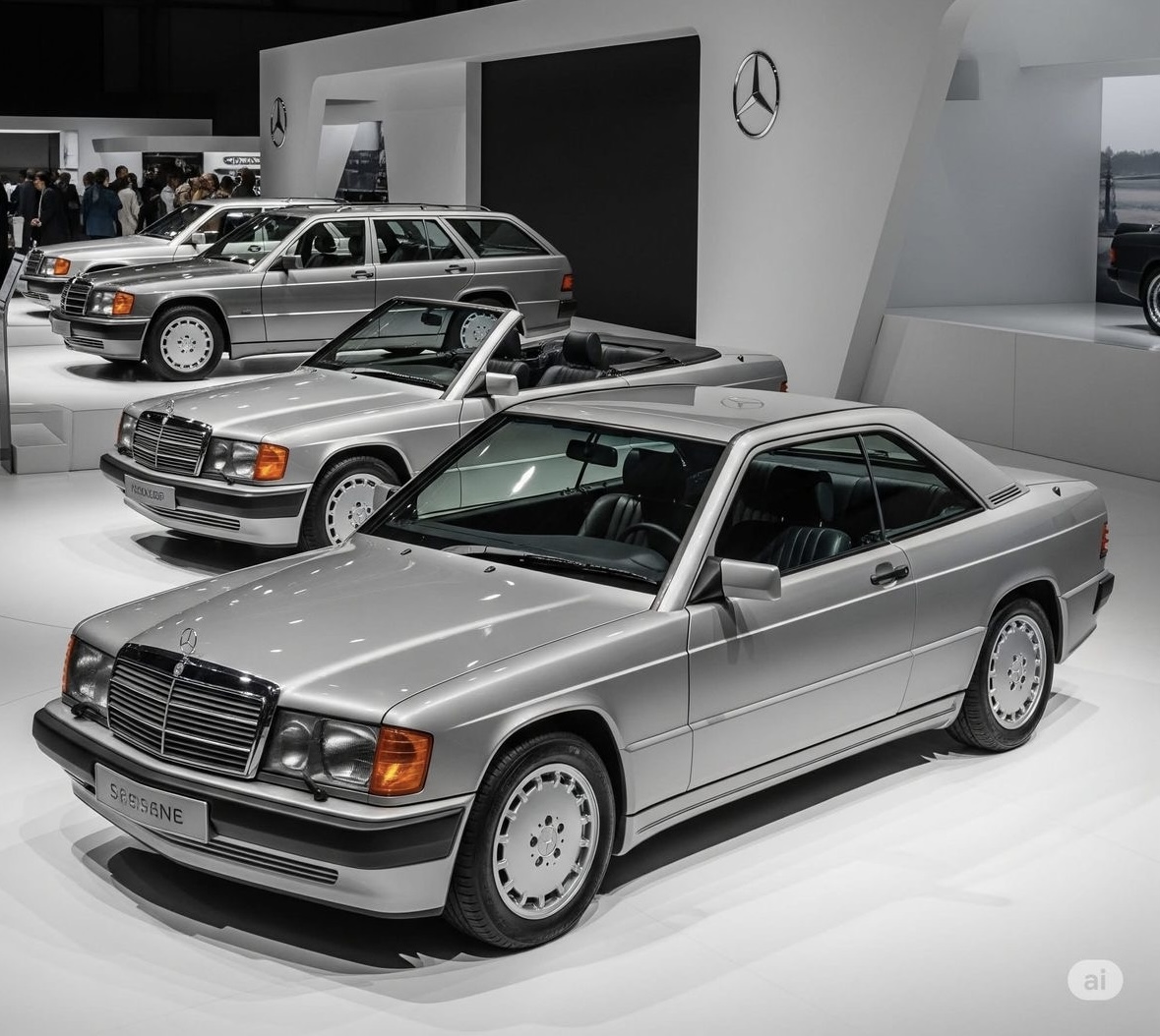 Le meilleur pour la fin : Des déclinaisons de la célèbre 190 qui n’ont jamais vu le jour et sont restées fabriquées en très très peu d’exemplaires: Un coupé fabuleux, un cabriolet d’une élégance folle, et un break très bien dessiné.